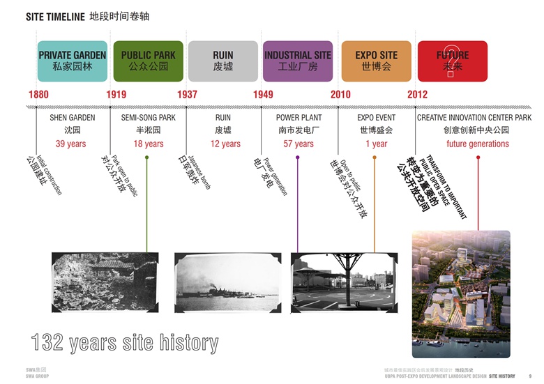 上海世博城市最佳实践区(以下简称实践区)南面滨江,北面近城,属于城南地区,近代以来具有相当丰厚的文化底蕴。横跨实践区的半淞园路得名于20世纪初城南的知名园林——半淞园。半淞园始建于1918年,是当时城南最大花园。园取杜甫《戏题王宰画山水图歌》中“翦取吴松半江水”得名,设计强调“全园悉从华制,无妨效洋式之处”。园中亭台池沼,一依山水画稿,以人为之美融入天然,以清幽之趣构筑浓丽。这种艺术情趣,深得中国传统园林美学真谛。园中时常举办花卉展览、焰火晚会,还有众多文人爱好的昆曲。每年端午节前后,半淞园内照例有龙舟竞渡表演,到1934年观众不下三万余人,成为民国上海旅游一大亮点。毛泽东与新民学会会员,叶圣陶与沈雁冰、郑振铎、沈泽民,以及上世纪30年代的平面设计先锋设计师们相继到此畅游、雅聚。可以说,半淞园是近代上海政治、艺术、创造、文学和相关文化精神的发源地之一。