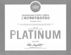 实践区荣获LEED-ND最高级别铂金级认证 2023年5月,城市最佳实践区通过USGBC最终认证,获评亚洲首个LEED-ND最高级别铂金级绿色街区