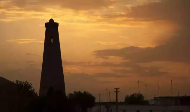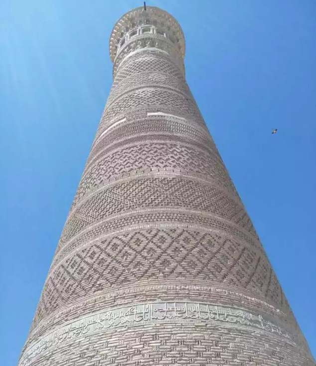 乌兹别克斯坦喀龙清真寺内的喀龙宣礼塔,是中亚地区古建筑最高塔,有900多年的历史。
