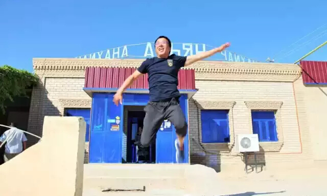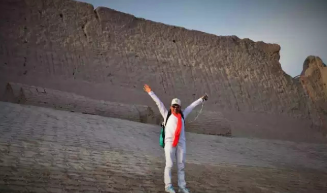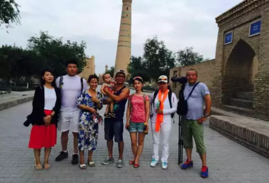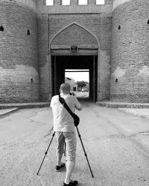 队员们顶着40多度的高温,也要在这般的美景下拍照留念。相片中的他们仿佛在布哈拉的旧时光里停驻。