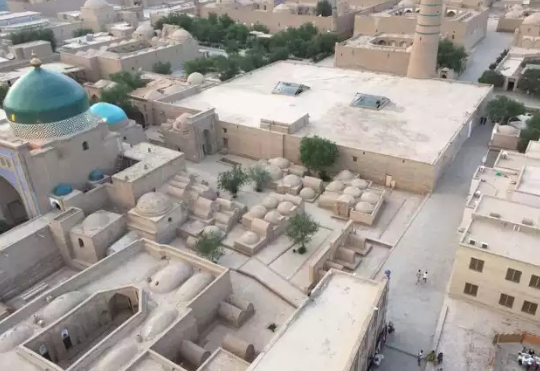 希瓦地处东西文化交流的要地,城内由两重城墙环绕,被列入《世界遗产名录》的伊钦,实际上是由高10米的城墙围成的内城。