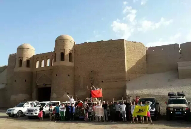 这是全体队员在希瓦古城的合影。之后,车队穿越了一条近似直线的沙漠路段,一条连接欧亚大陆的艰苦魔鬼路段。