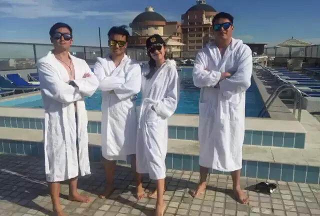 车队于中午到达阿特劳,参观了乌拉尔河和欧亚分界塔,入住河畔酒店。在经历了两天艰苦的跋涉后,队员们终于可以卸下重担,跃入泳池,来个彻底的RELAX!