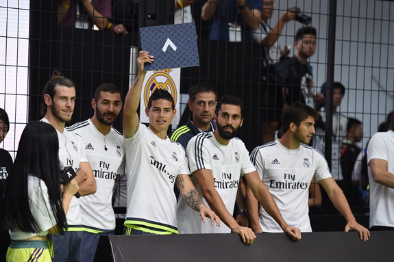 7月29日上午11点,当皇马这边五员大将——贝尔、本泽马、哈梅斯·罗德里格斯、卢卡斯·席尔瓦以及阿贝罗亚现身秀场,引发的尖叫几乎要掀开场馆的顶棚。百余位身穿皇马主场队服的球迷大声呼喊着球星的名字,场外不少球迷无缘进场,依然在烈日下守候,只为在球星们进出场的时候见上一面。