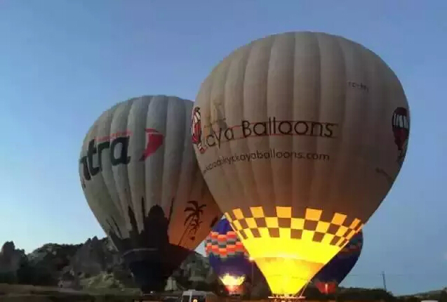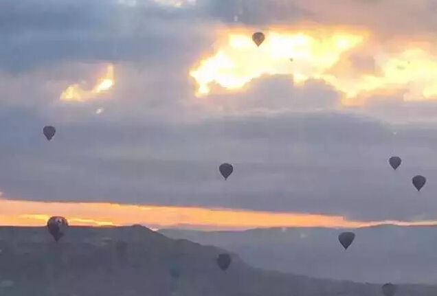 随着喷火器喷出的熊熊火焰,热气球一个接一个地离开地面,升上天空,卡帕多奇亚的神奇地貌和壮美的空中景观尽收眼底。这番景象,光是看看就已经令人感动!迎着初升的太阳,拥抱天空,脚下是卡帕多奇亚特有的如月球表面般的地貌全景。