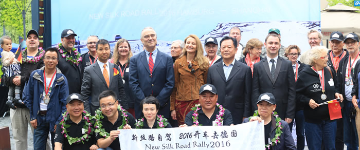 5月29日,2016年新丝路自驾——汉堡-上海汽车接力仪式在城市最佳实践区汉堡之家举行,为上海-汉堡友城30周年庆典拉开序幕。德国驻上海总领事罗腾、汉堡驻中国联络处首席代表安克、上海市公共外交协会常务副会长李丰华、上海市公共外交协会副会长道书明等出席了交接仪式,并与来自德国和中国的车手合影,共同鉴证上海与汉堡这两座友城30年来的深厚友谊。