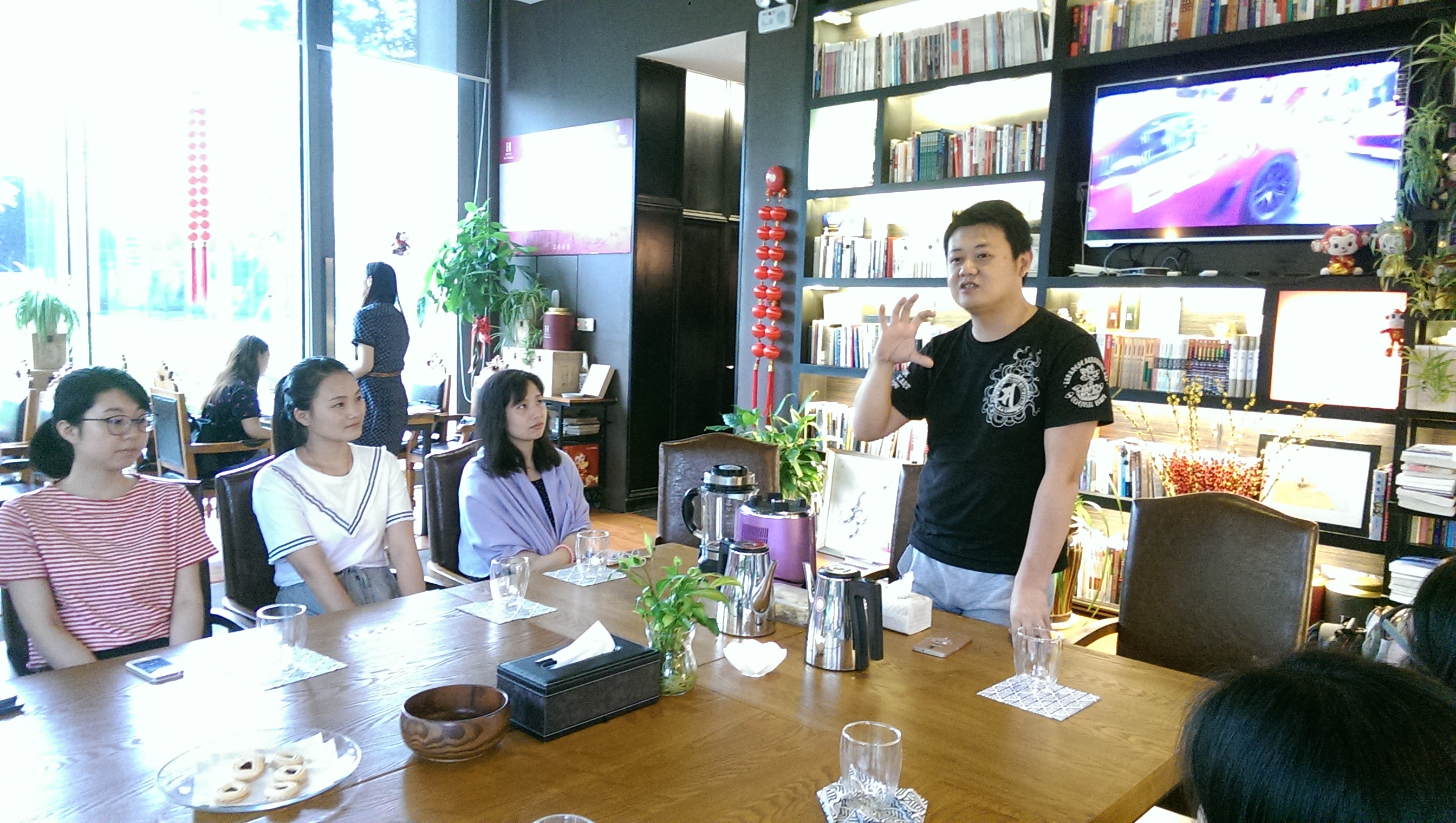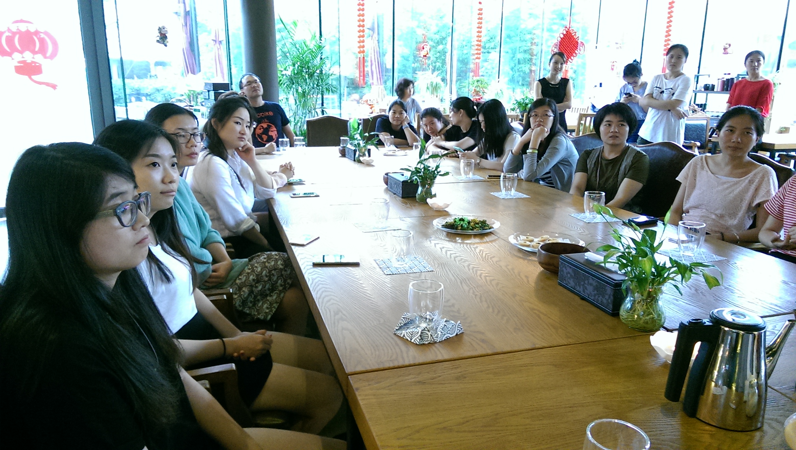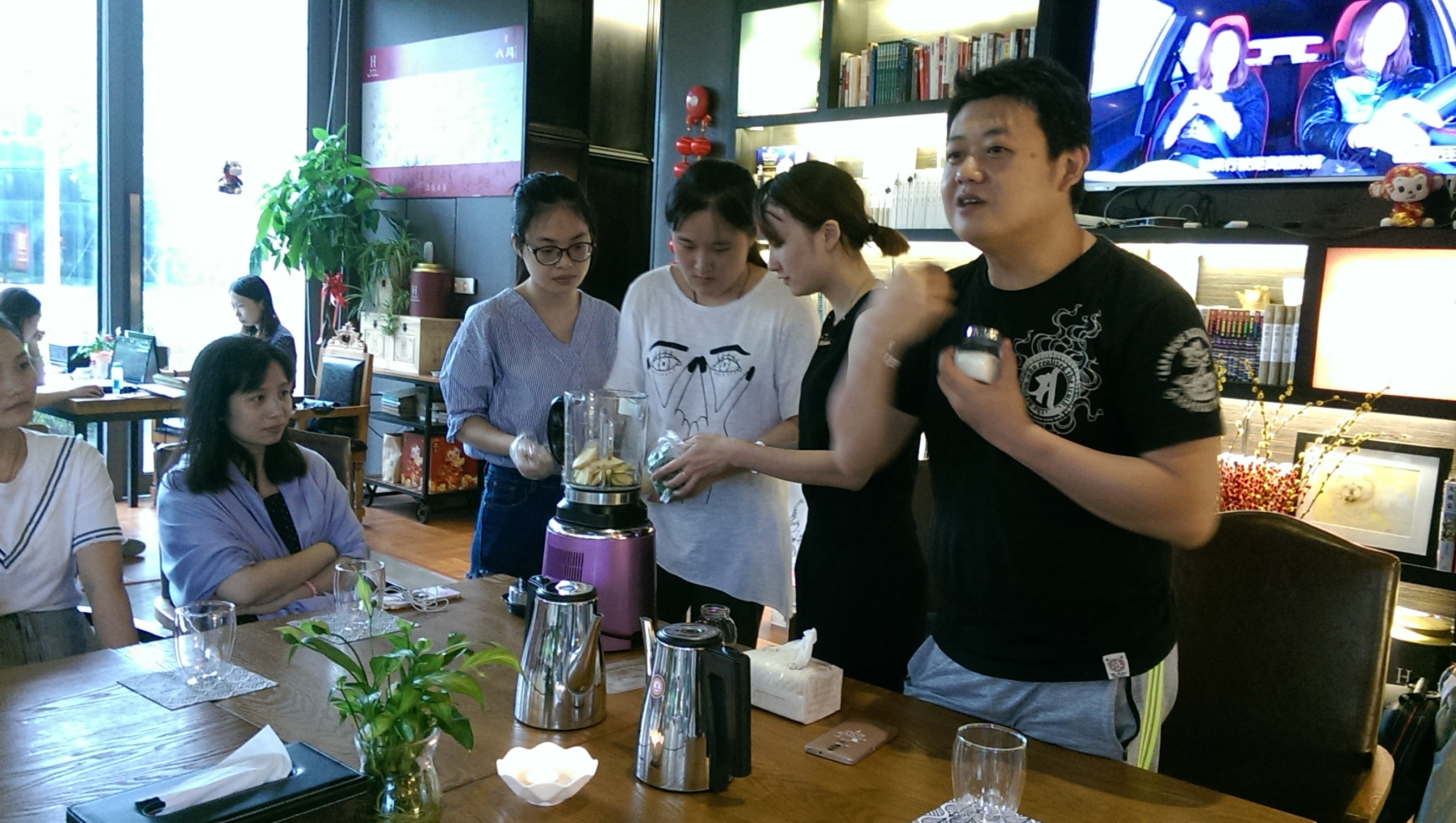正值梅雨季节,闷热又潮湿,饮用紫苏生姜茶,有着发汗去湿的功效,老师详细地介绍紫苏、生姜的养生知识,学员们聚精会神滴听课。