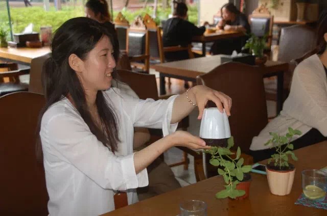 芳香课程,顾名思义,“香”字占据很大的主题,怎样闻香?同样的一株植物,香味为何不同……接下来的课程上,各位美女们一面品尝着自己亲手调制的咸柠七,一面聆听老师重点介绍了薄荷,以及薄荷的栽种方法,还让大家尝试了如何为盆栽薄荷移盆。