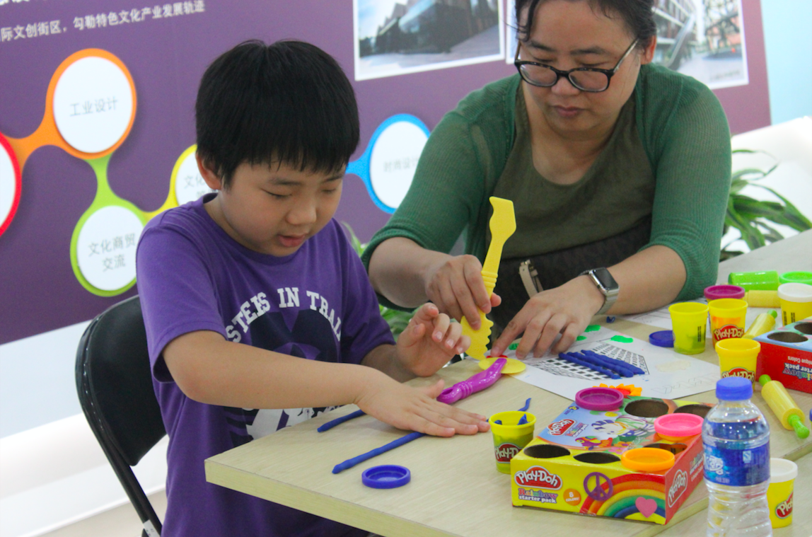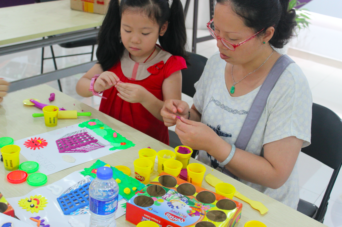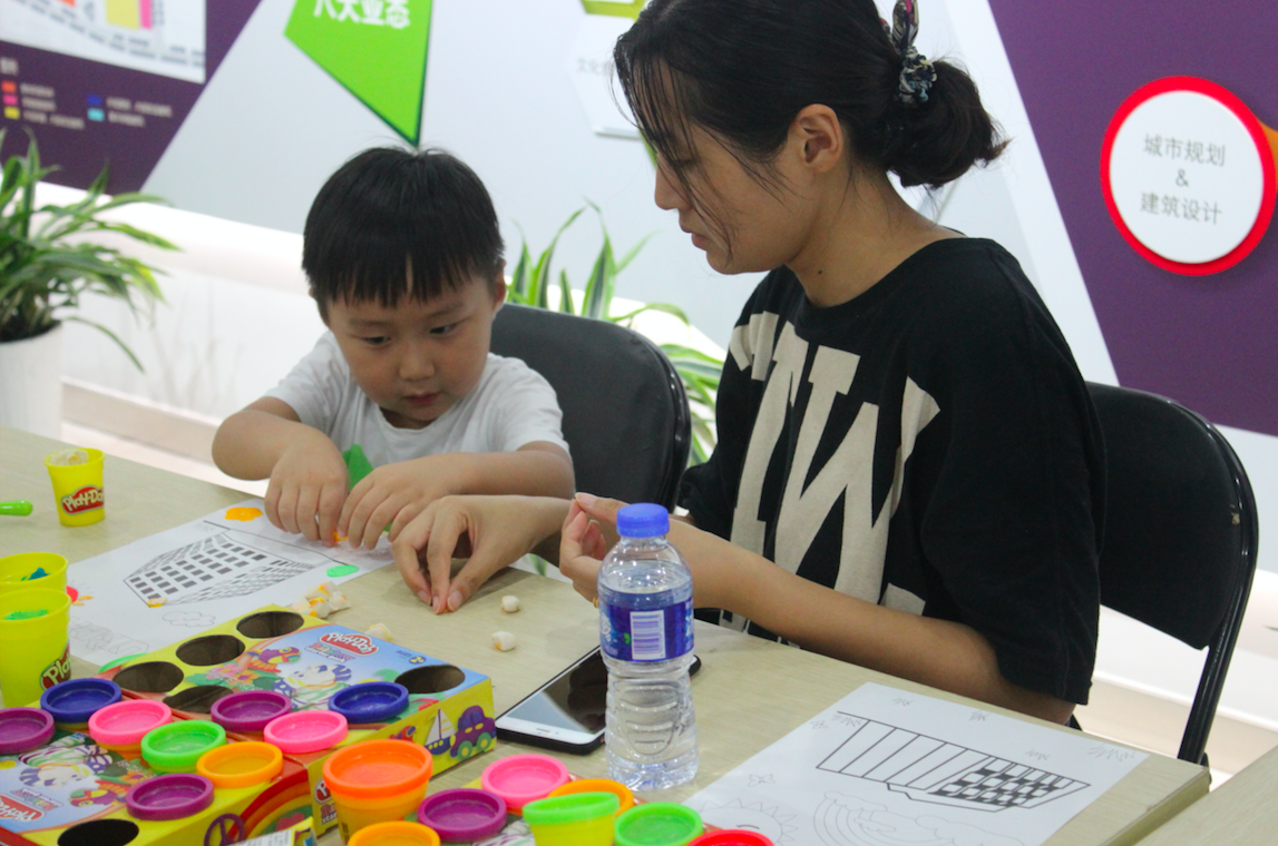 看着小盆友饶有兴趣地创作,一旁的家长也按捺不住了,与孩子一同“玩耍”。