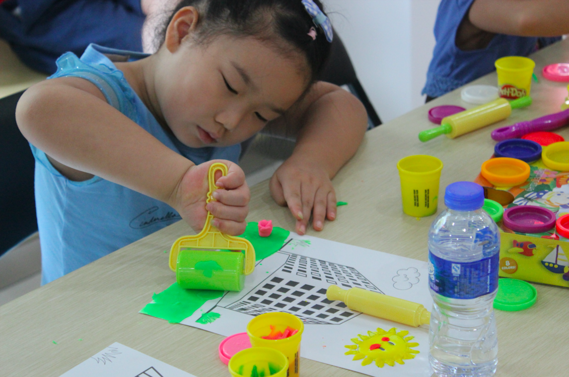 瞧这专业的姿势,让小U也自叹不如呢。还有这认真的小眼神,细细搓,慢慢揉,一看就已沉浸在彩泥创作之中。
