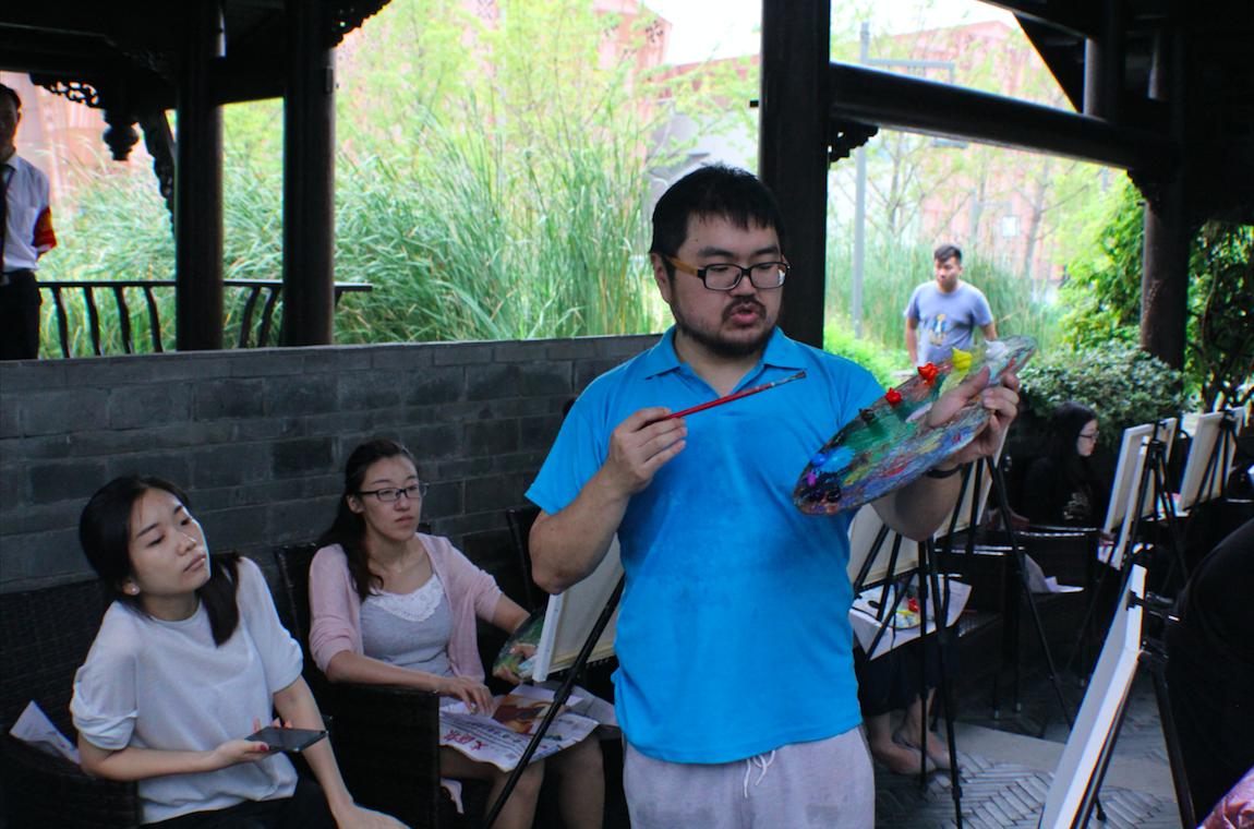 9月29日,实践区群团服务站活动在川西小筑举行,受到台风“鲇鱼”的影响,天空淅淅沥沥下着雨,但这丝毫影响不了UBPA里的“大师们”油画创作。
