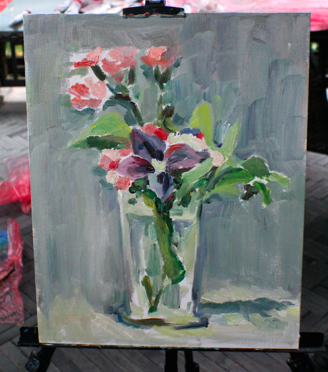 虽然雨一直下,却也带给了小伙伴绝佳的创作氛围,大家都静心创作,在画布上舞动着画笔。