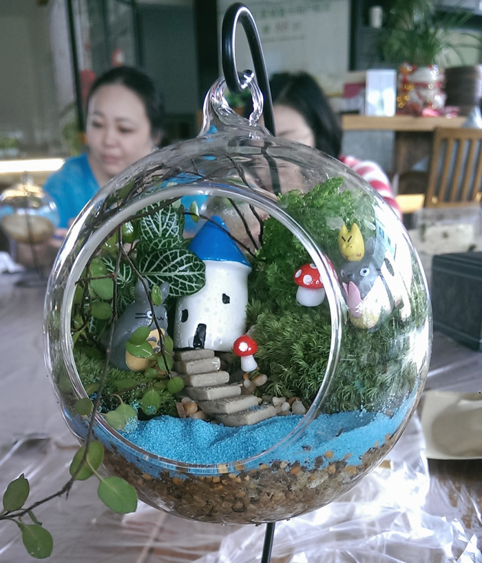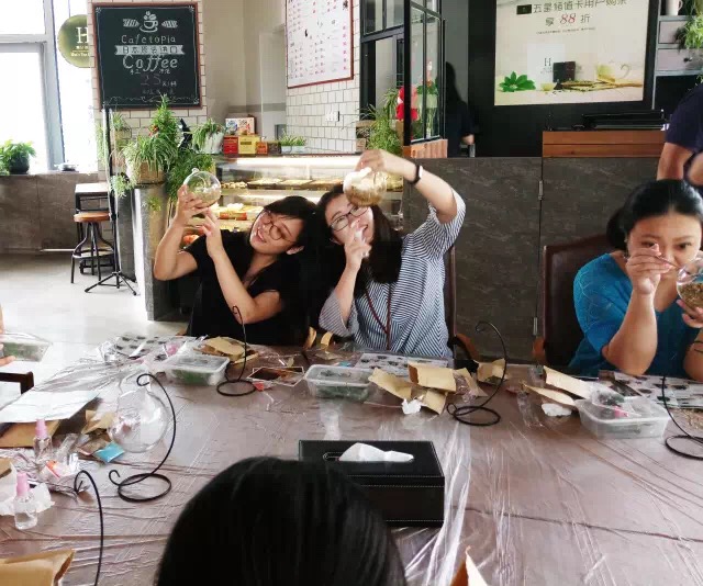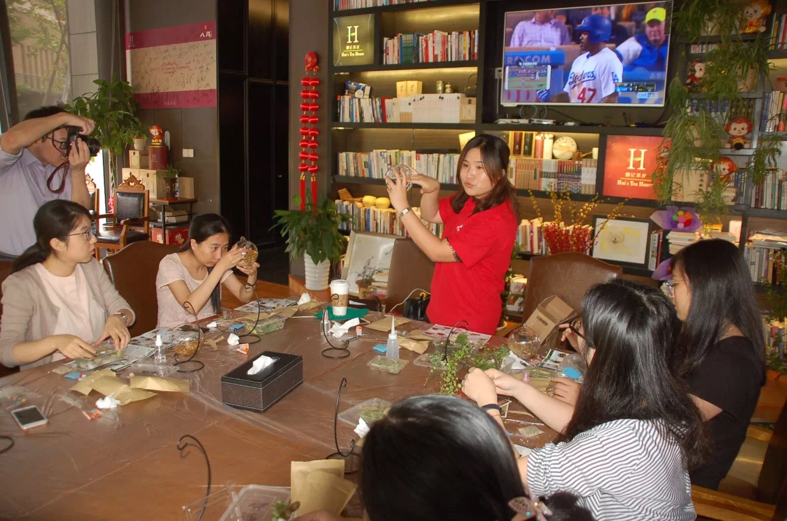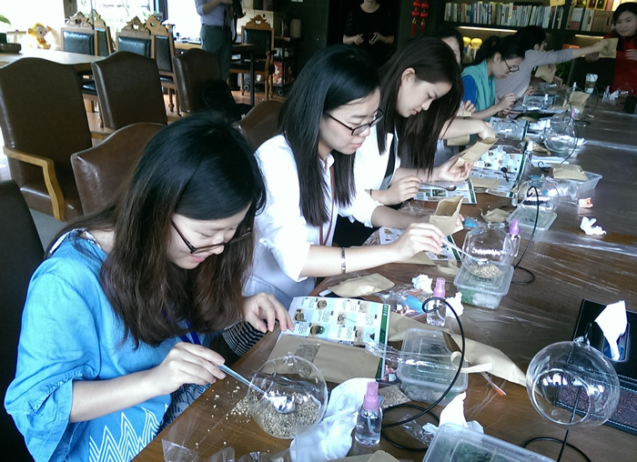小伙伴们神情专注,举手投足间一丝不苟,都希望自己的作品将来放到办公桌前,能为枯燥的办公室添一份绿色,更添一份好心情。你看大家或与老师热烈讨论,或面对作品认真思考,或把自己的理解融入作品中。