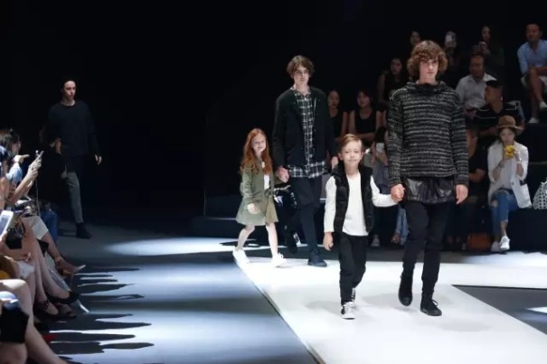 当天秀场的高潮,莫过于模特手牵KIDS登台谢幕。