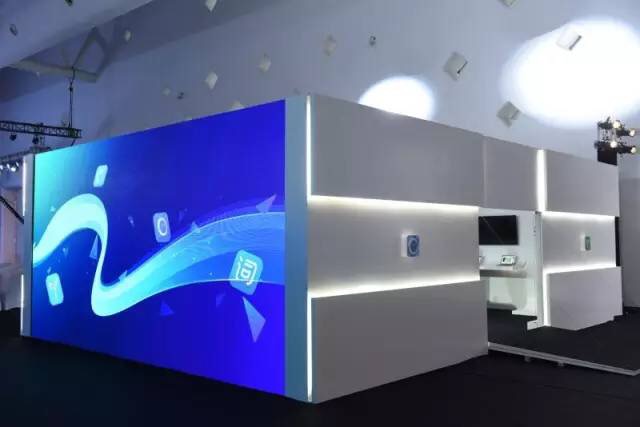 经过签到区往主会场方向走,通道由两块体验区拱卫,有点“若要从此过,脚下慢慢行”的意味。体验区像两只大箱子,经由一个可以打开的开口可进入内部,里面同样突出了简约的科技风。