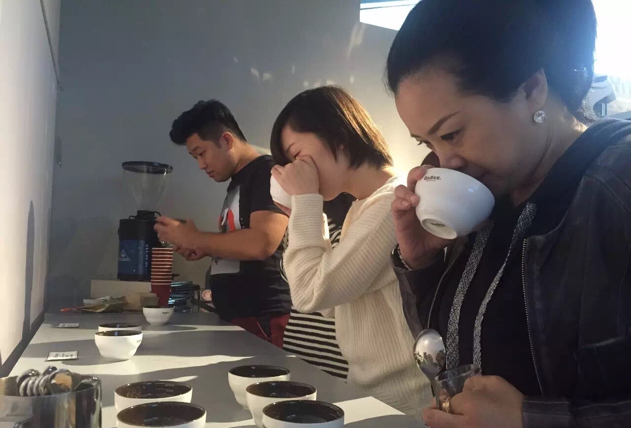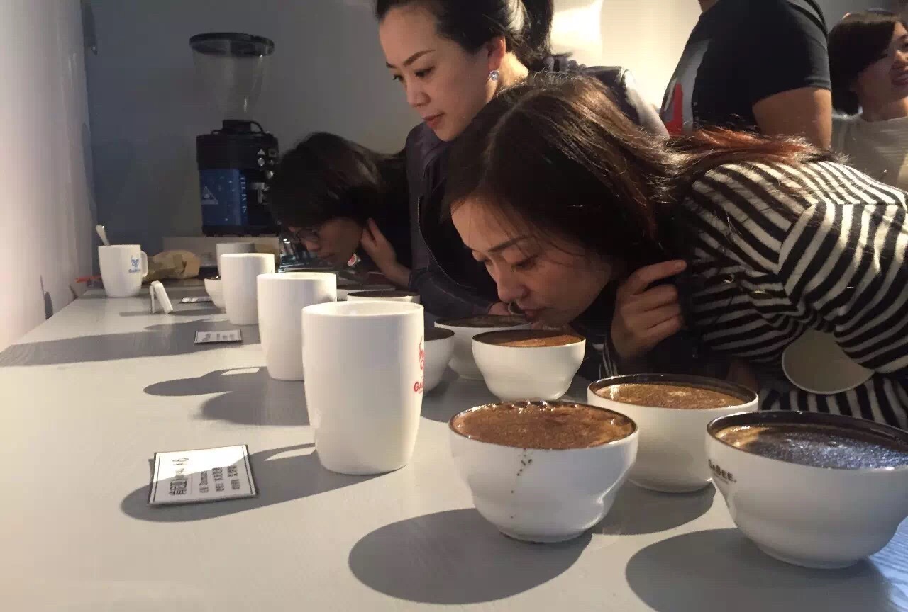 闻香识咖啡,杯测练习开始,大家在老师的指导下,从干香气、湿香气、味觉感受等方面学习如何品鉴一杯好咖啡。