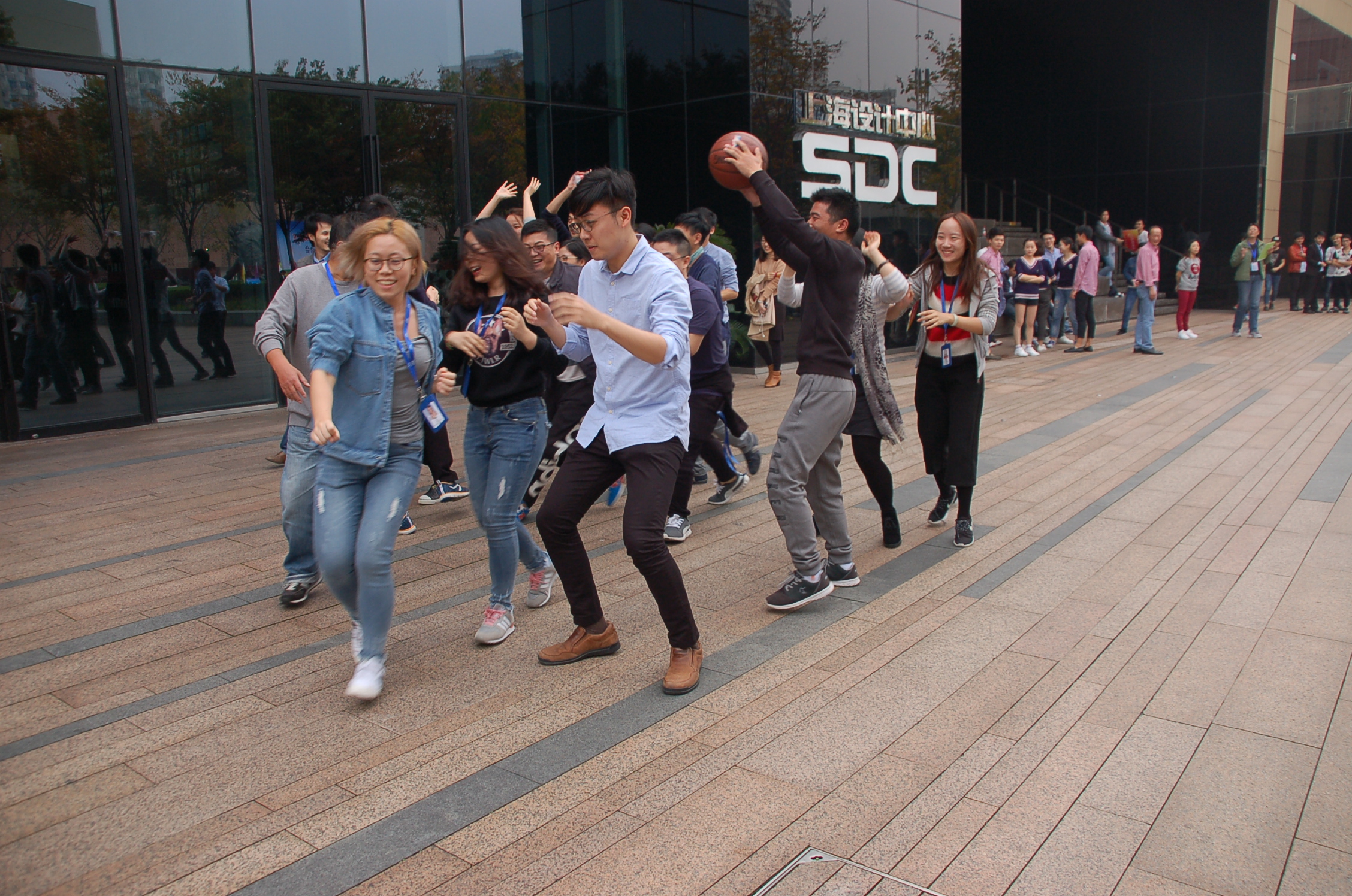 接下来的齐心协力接力、传球接龙比赛考验大家的团队协作,颇有难度。“三人四足”的齐心协力接力比赛锻炼出团队的特殊跑步技巧,三人齐心,步调一致奋勇向前。而传球接龙比赛则发挥出团队的反应速度,不仅要手上快速传球,脚下也要迅速移动。