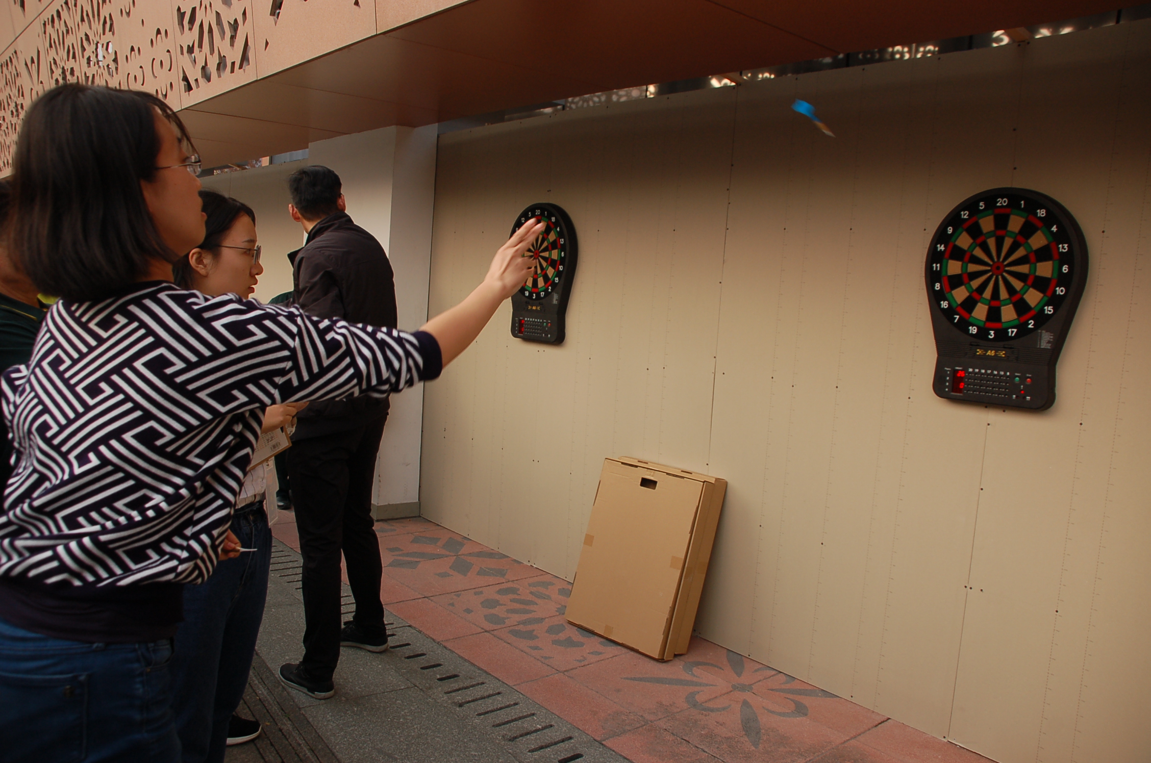 此外,在踩平衡板、电子飞镖等项目上,选手们也各显身手,为自己的团队争光夺彩!