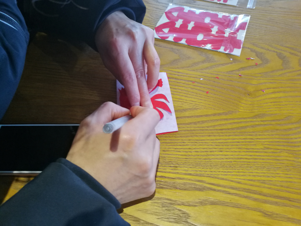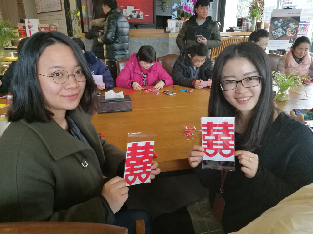 第一个完成“功课”的是一位心灵手巧的男童鞋,一个火红的双喜出现在我们面前,这手工还真不赖!再看看妹子的手工成果,都是棒棒哒!