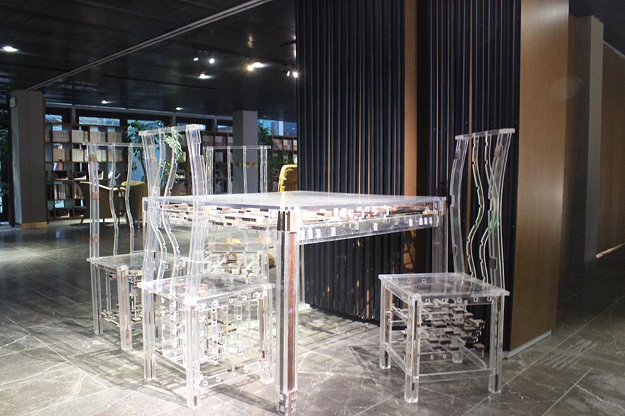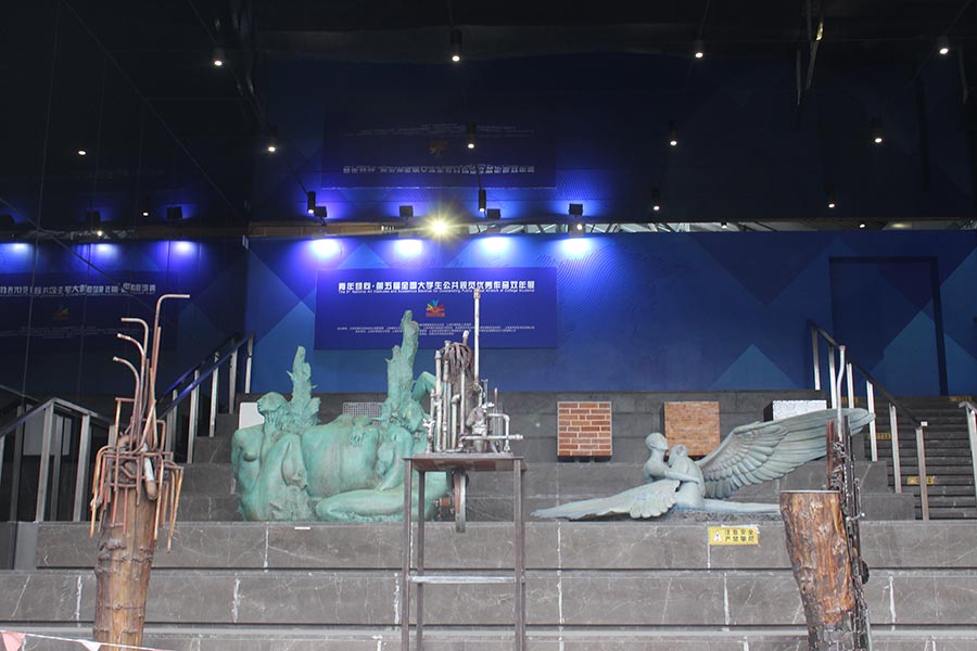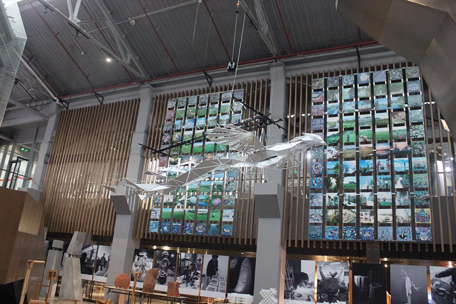 顺着楼梯走上二楼,一只展翅翱翔的“飞鸟”格外引人注目,它静静漂浮在半空中,张望着这里的一切。二楼的展品也是巧妙绝伦,有的雕塑作品借用寓言故事,传达出生活真谛;有的作品打破常规,将作者的奇思妙想展现得淋漓尽致;还有的作品蕴含着现实世界的挣扎,引发小U和游客们的无限遐思……
