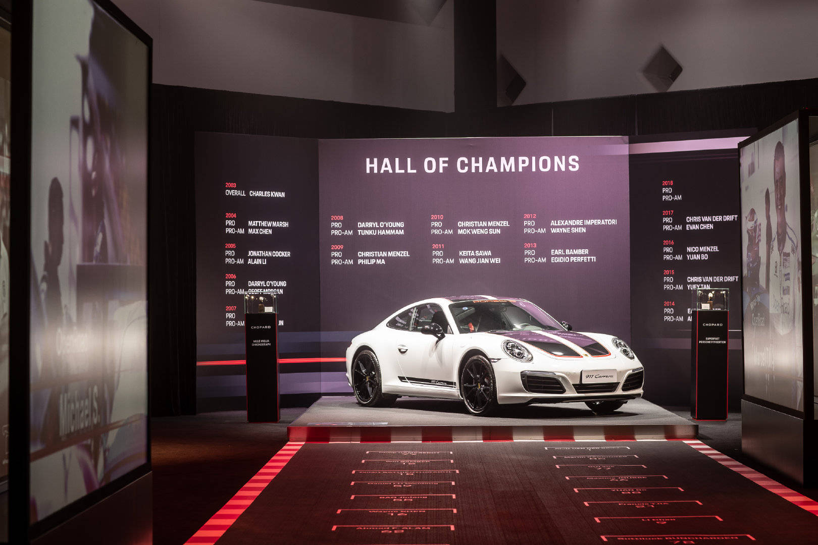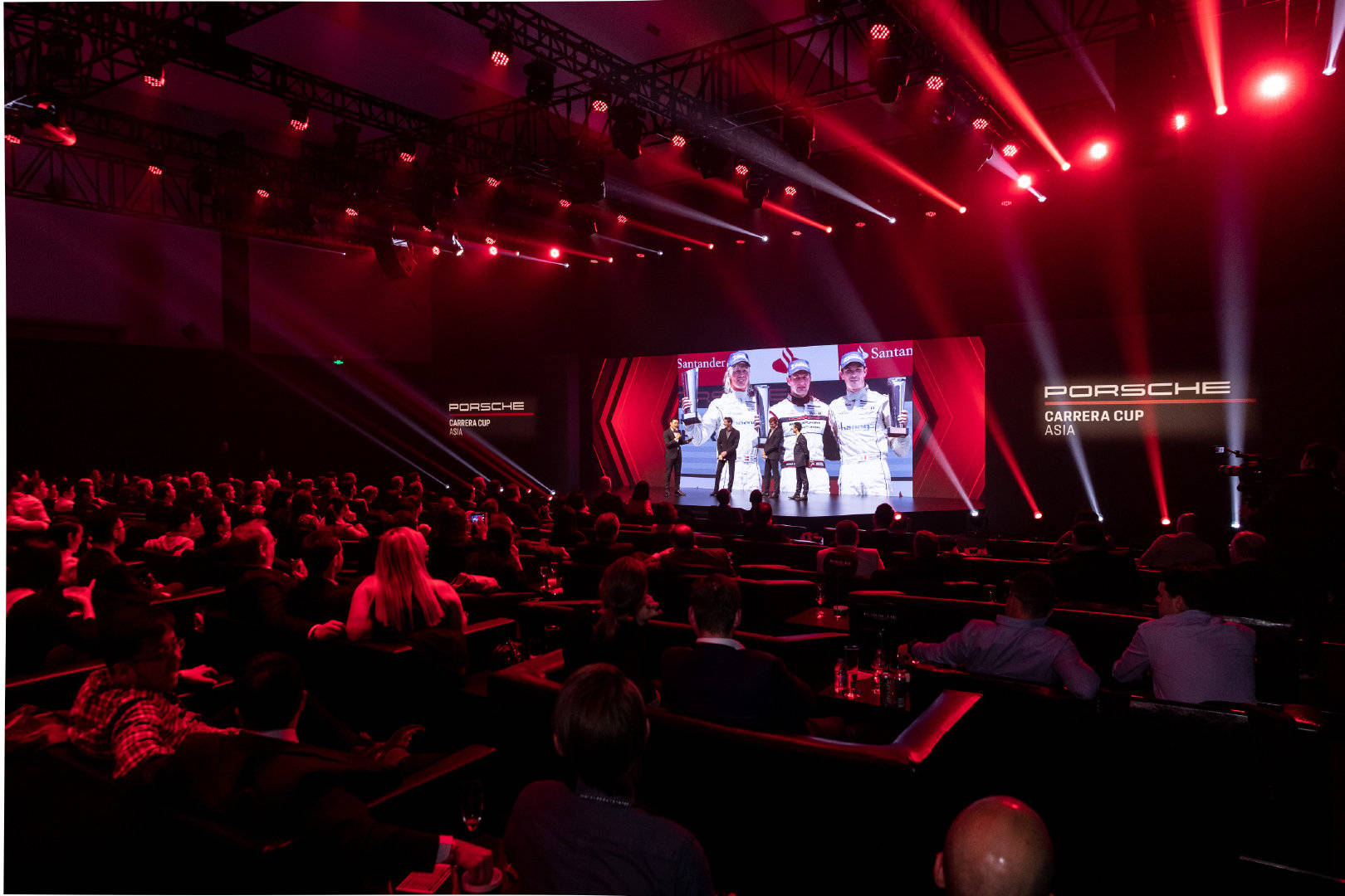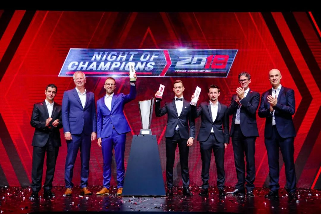 2018亚洲保时捷卡雷拉杯用香槟和奖杯庆祝一个赛季的完美收官。当晚,组委会为本赛季专业组和绅士组前三甲颁奖,一同分享赛道上的“速度与激情”,感受大赛收官的喜悦。