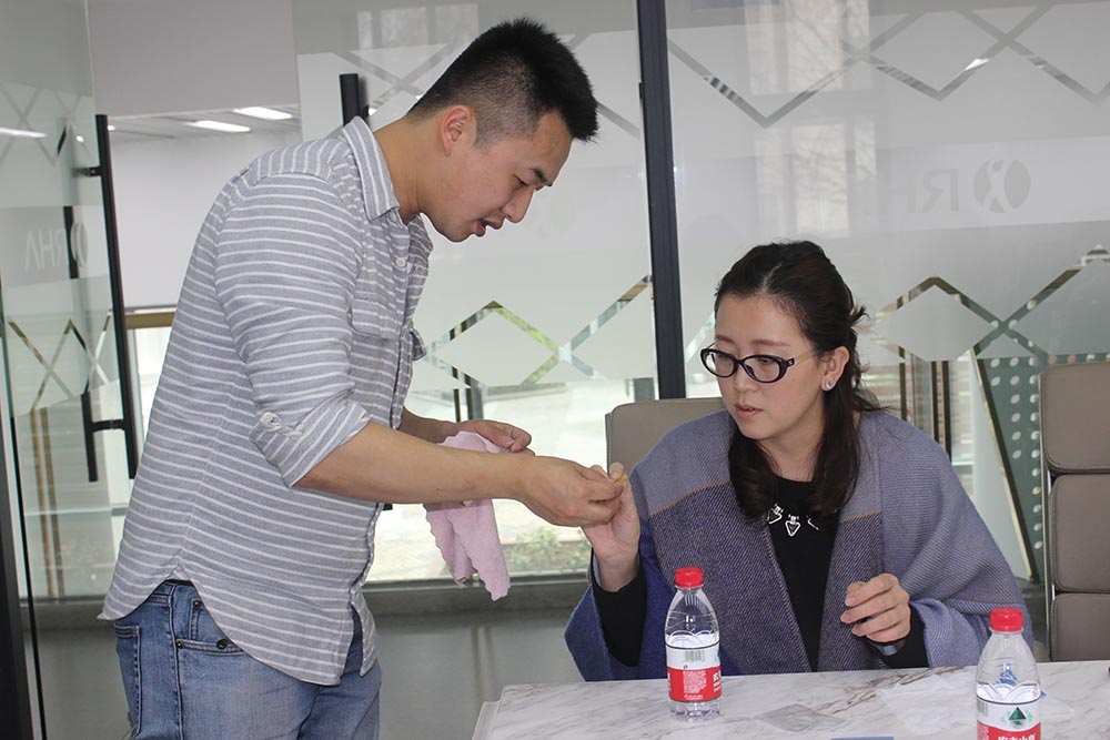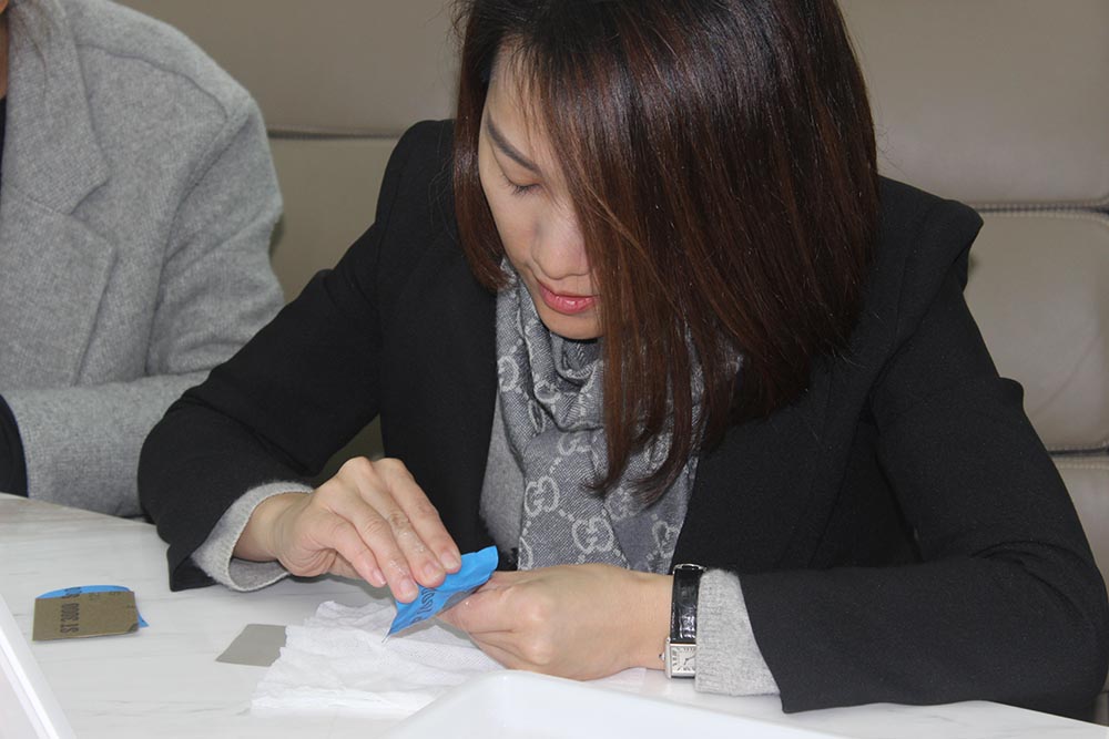 期间,老师关注着大家抛光的进展,对每一位学员亲授指导,真真是位暖男老师呢~换上3000目的砂纸,抛光坚持3分钟,go on!