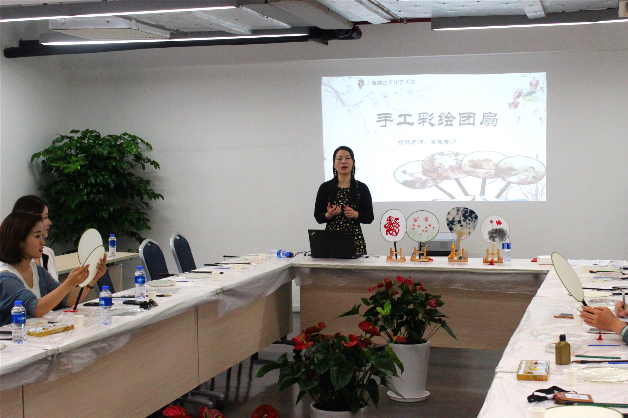 现场老师也很悉心地指导大家,比如写意画的意境感、团扇图案的配色等问题,都一一为大家解答和亲手示范。