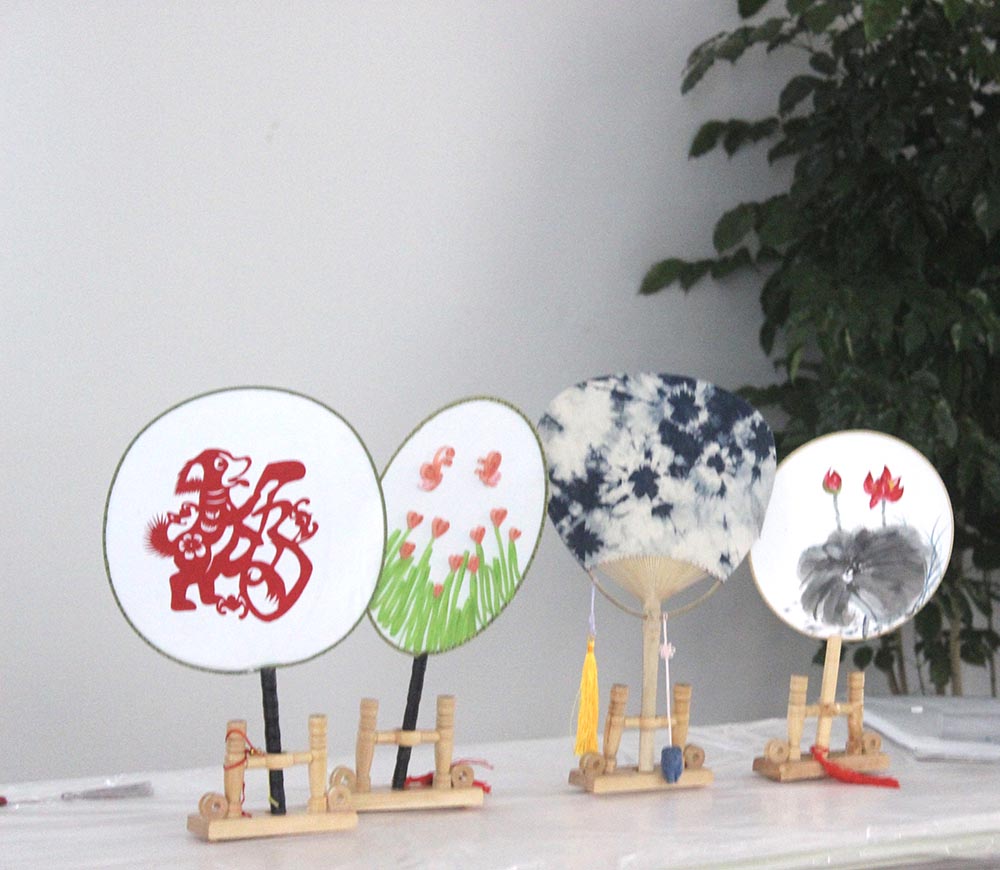 经过一个小时的精心绘制,大家的手绘团扇大功告成,小伙伴们纷纷开心地秀出自己的“大作”。