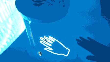 只要伸出手,上方便自动滴落「小黑瓶」,同时在手上投射出微生态影像,虚实在此处完美融合,切身感受「小黑瓶」的丝滑触感与卓越功效。
