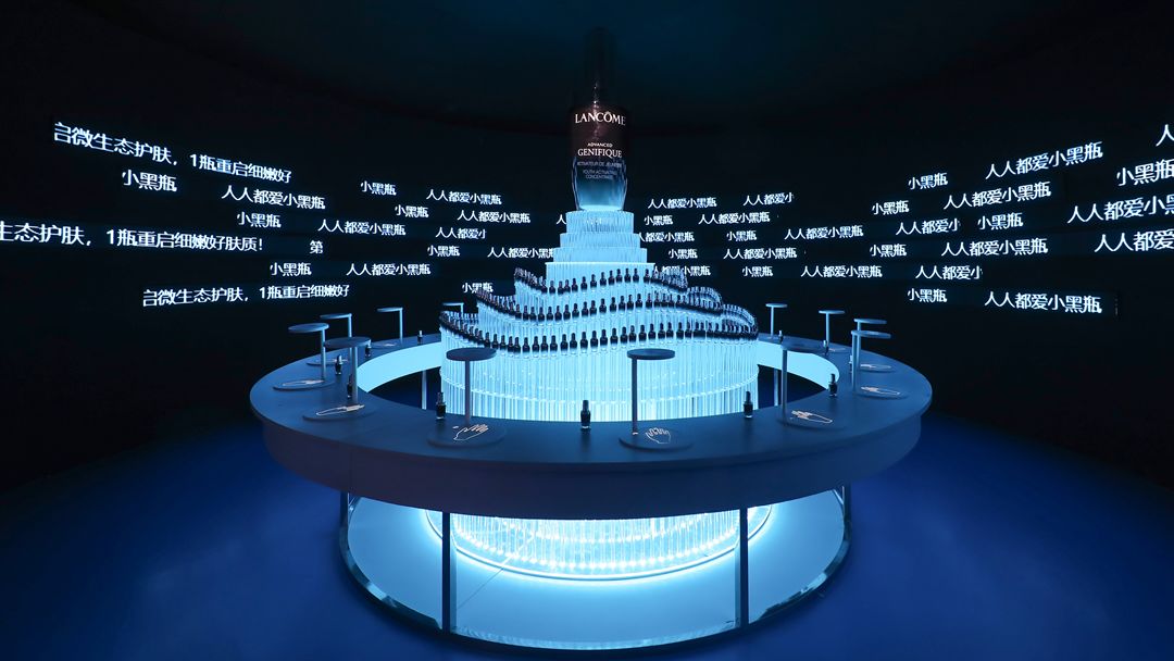 在模拟「小黑瓶」实验室的空间,品牌方通过艺术化陈列装置,为你呈现产品的前沿科技和非凡功效。
