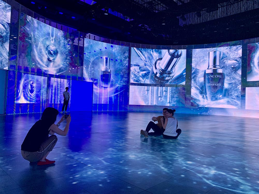 在美丽的中央艺术视觉装置周围,智能试用装置邀请你触肤体验。