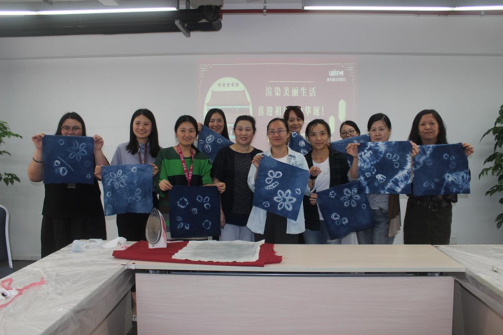 体验活动不仅激发了园区白领对非遗艺术的兴趣爱好,陶冶了情操,更让大家在传承这种古老技法中享受那份动手的喜悦。同时,白领们也带着对祖国的美好祝愿,用自己精心制作的扎染作品为国庆献礼!